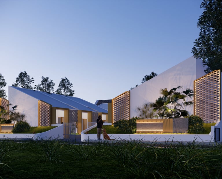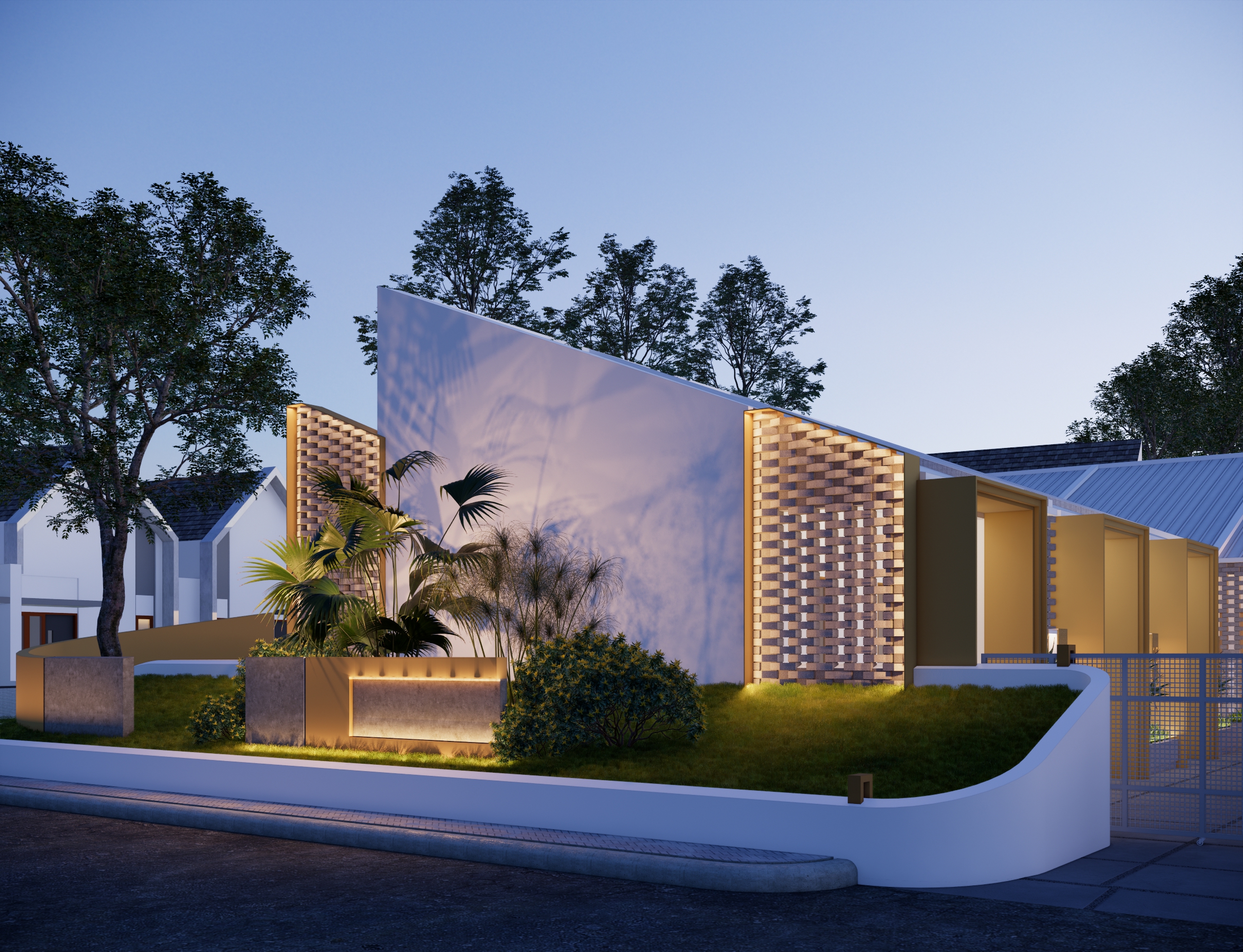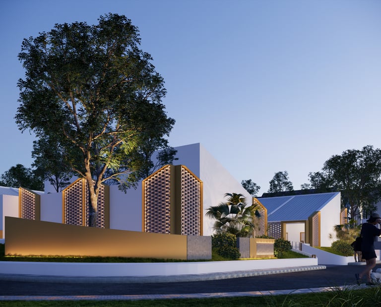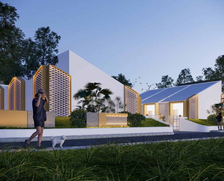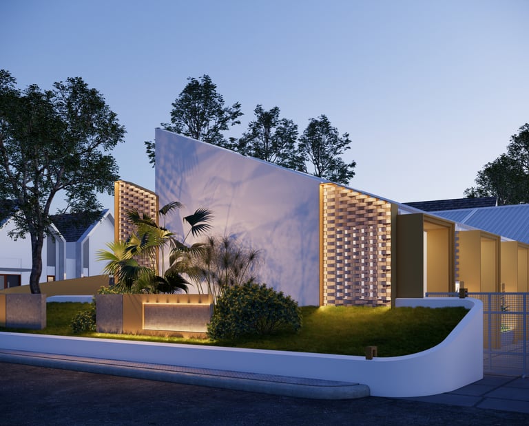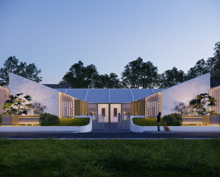 Mengusung konsep kontemporer tropis, bangunan ini menampilkan fasad unik dari susunan bata ekspos yang tidak hanya memperkuat identitas visual, tetapi juga berfungsi sebagai elemen pasif untuk memperlancar sirkulasi udara—mewujudkan ruang yang tidak lembap dan tetap sehat secara alami.
