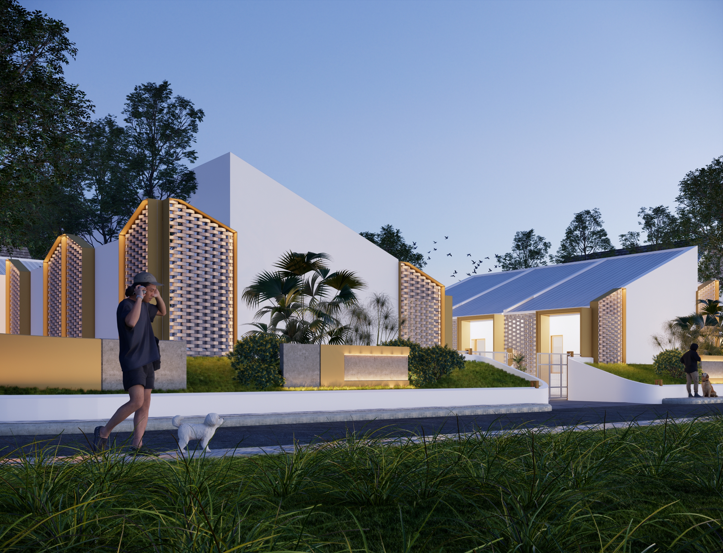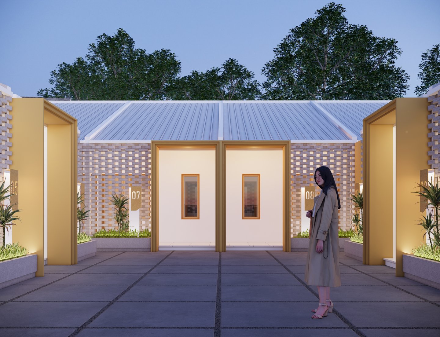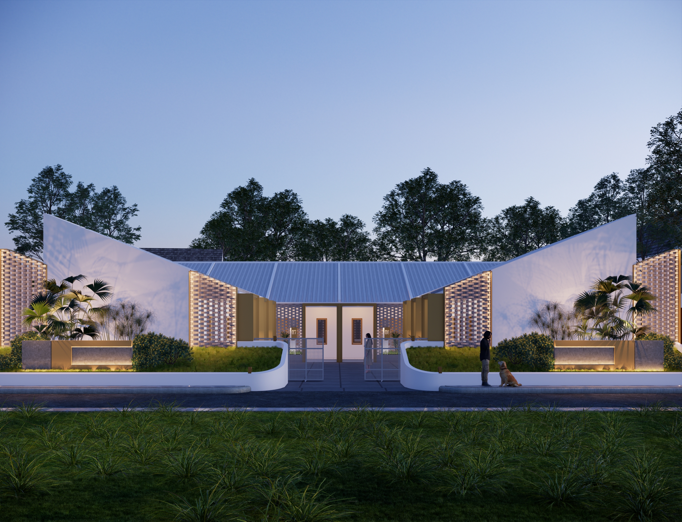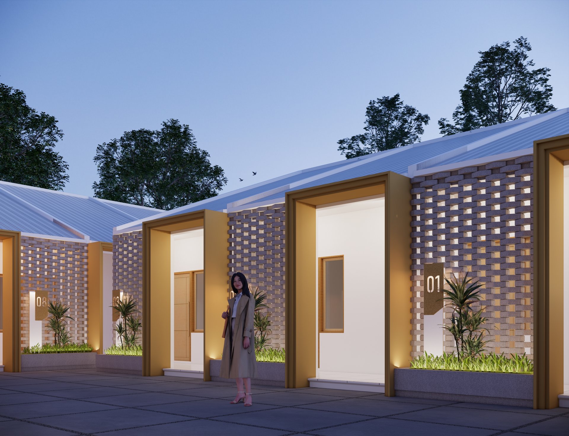 Mengusung konsep kontemporer tropis, bangunan ini menampilkan fasad unik dari susunan bata ekspos yang tidak hanya memperkuat identitas visual, tetapi juga berfungsi sebagai elemen pasif untuk memperlancar sirkulasi udara—mewujudkan ruang yang tidak lembap dan tetap sehat secara alami.