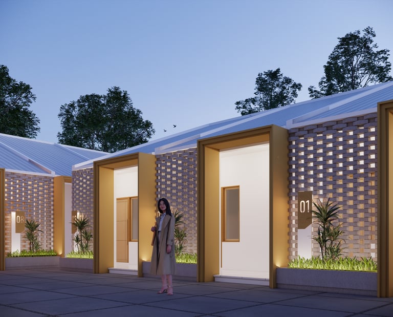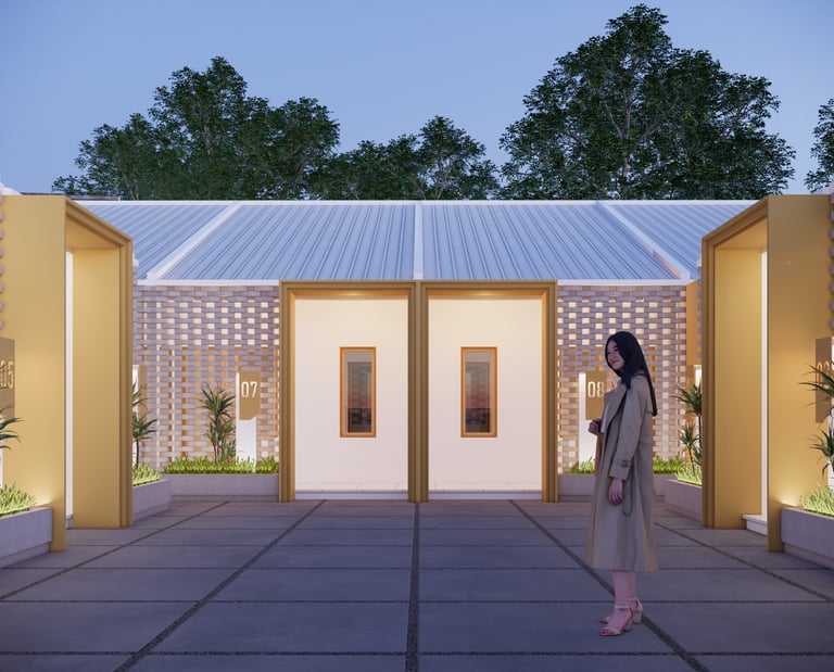 Secara fungsi, bangunan ini memiliki 12 kamar kos yang ditata dengan mempertimbangkan kenyamanan dan privasi. Area workshop milik klien turut hadir sebagai bagian dari kompleks ini, namun dipisahkan secara zonasi melalui pagar tanaman yang berfungsi meredam kebisingan serta menjaga ketenangan penghuni.